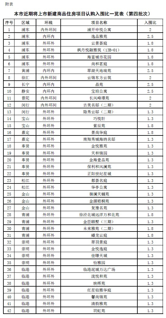 上海调整住宅新房认购入围比,较高达到2.5:1
