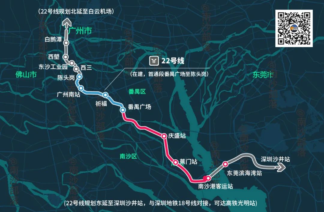 由于22号线首通段并不经过南沙,因此有网友表示该线路对南沙的意义并不大。事实是这样吗?