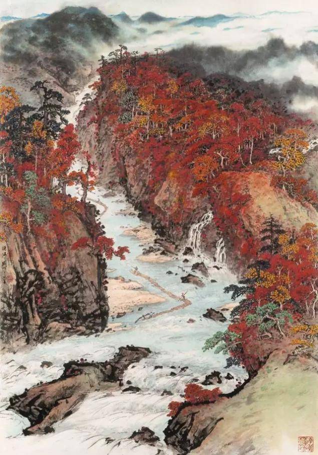 关山月 秋溪放筏图