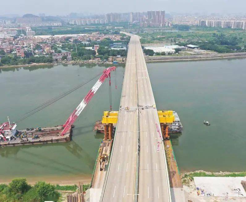 广州番禺北斗大桥抢险项目—临时支墩托梁吊装。通讯员供图