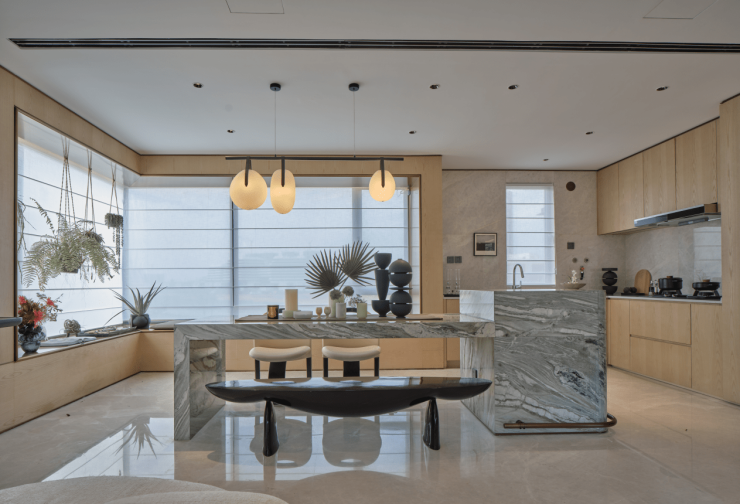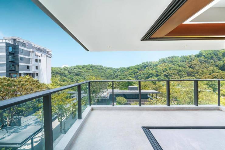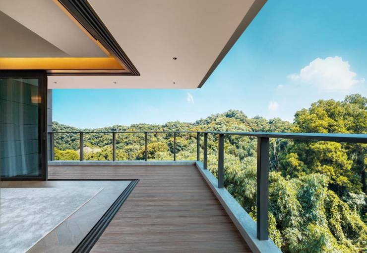 站在阳台上,约13米的宽度,你可以来回的移步,从各个不同角度把景观细细欣赏一遍,这一刻,真切地仿佛去到了日本先进度假酒店虹夕诺雅给你营造的场景感。