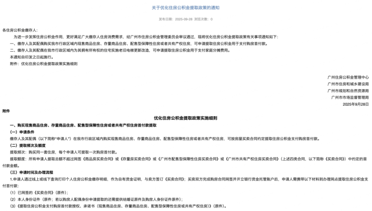 广州市公积金管理中心发布一则关于《优化住房公积金提取政策的通知》。