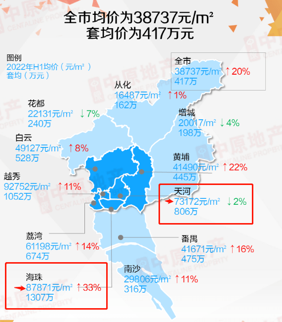 究其原因,天河虽是房价的“天花板”,但由于版块热销项目中有单价相对较低的刚需盘,而 海珠今年多个高价位项目集中入市,造成了 “结构性涨价”。