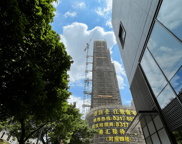港汇台为该综合项目的C栋。从现场施工进度上看,项目写字楼已经结构性封顶,C栋正在拆除排栏,已经是准现楼状态了,据悉项目将于明年4月带装修交楼。