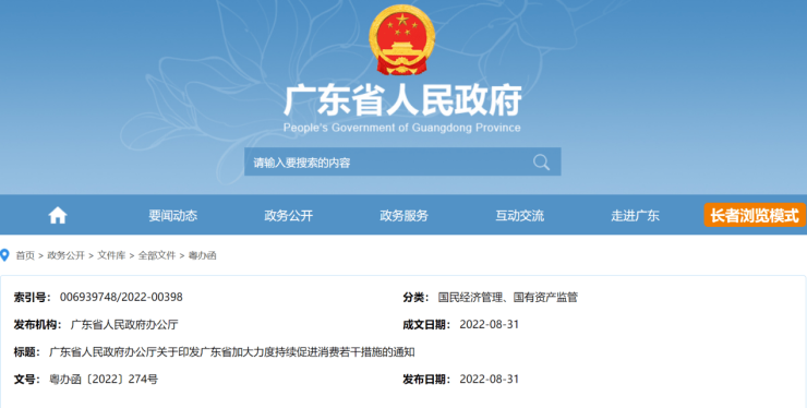 广东省人民政府办公厅发布关于印发《广东省加大力度持续促进消费若干措施》的通知。该通知涉及16条措施,涵盖文化旅游、汽车、家电、住房等大类可选消费、不动产消费以及消费券发放。