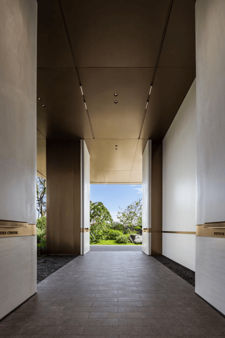 在高端住宅领域,归家动线的品质是衡量居住体验的重要标尺。美的·未来中心|江山在此层面倾注匠心。在社区内部,项目以“五重景观”园林与全龄段架空层泛会所体系,重新定义了社区生活,通过乔木夹道、蜿蜒园路与四季花木的层层递进,实现连廊与绿意的穿插引导,实现步移景异的沉浸式体验。