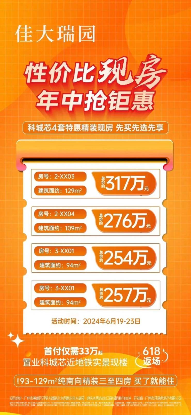 6月19日-23日,科学城芯现房佳大瑞园推出年中钜惠活动,首付仅需33万起即可入三房,具体可参考以下海报!