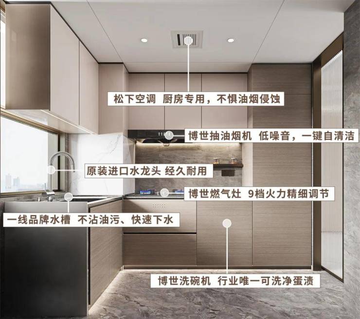 夏天做饭太热,一般项目会考虑交付凉霸。项目直接配置厨房专用空调,能迅速、精准调节厨房温度,让烹饪更快乐。
