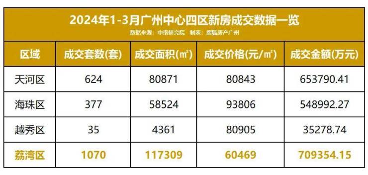 依中指院数据,1-3月,无论是新房成交套数、成交面积,还是成交金额,荔湾均遥遥领先。