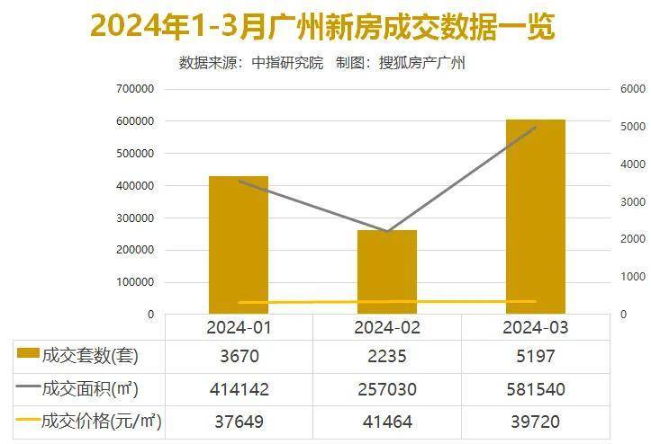 中指院统计显示,3月广州新房成交量达5197套,环比上涨132.53%,逼近于1月、2月的成交量总和。(数据来源:中指研究院)