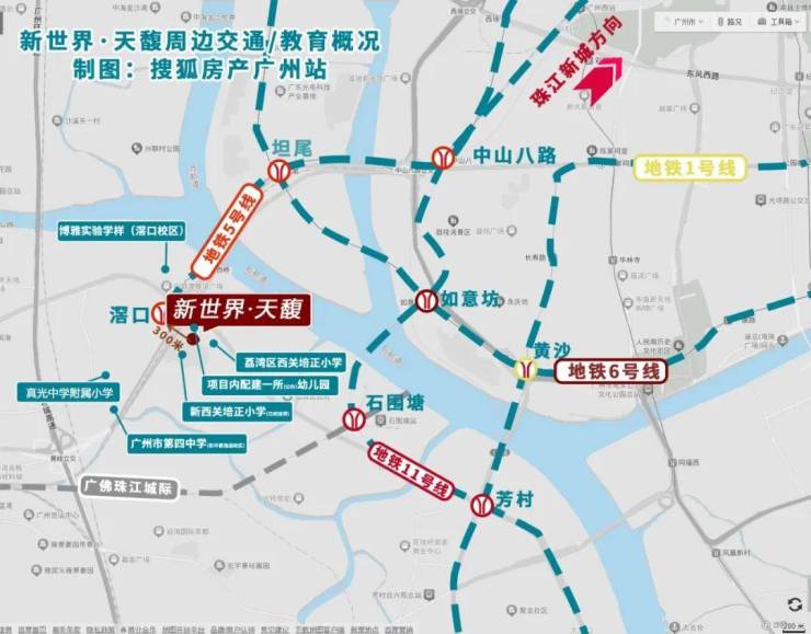 新世界·天馥楼下配建有幼儿园,步行约200米范围内有两所西关培正小学,附近还有广州四中、真光中学附属小学等。