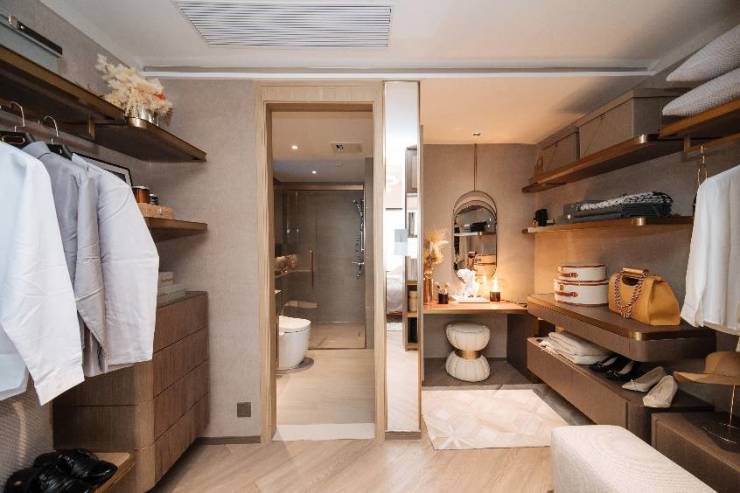 起居空间随心切换,只要业主喜欢,可根据家庭理想,满足三代同堂、二胎家庭的需求,还能给太太心心念念的超大衣帽间,满足她对精致生活的追求。