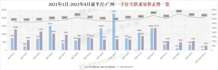 据克而瑞数据统计,4月前半月广州一手住宅总计供应811套,成交2912套,成交均价3.6万/㎡。