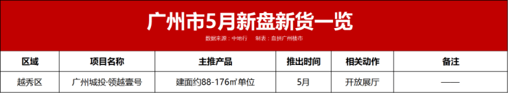 其中,上个月缺席的越秀区5月将“小气”推出一个全新盘,天河区倒是豪气推出四大新货,个别还是当红“炸子鸡”;