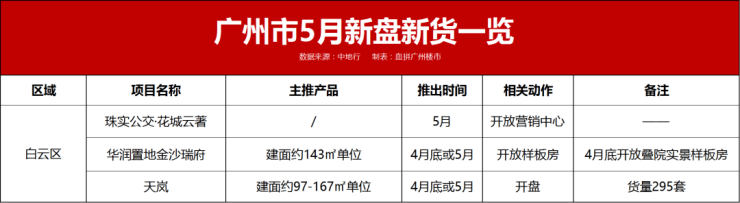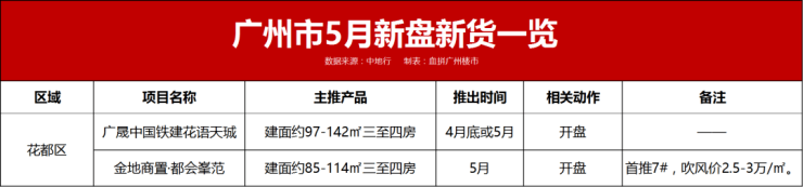 花都区5月预计有2个全新项目开盘。