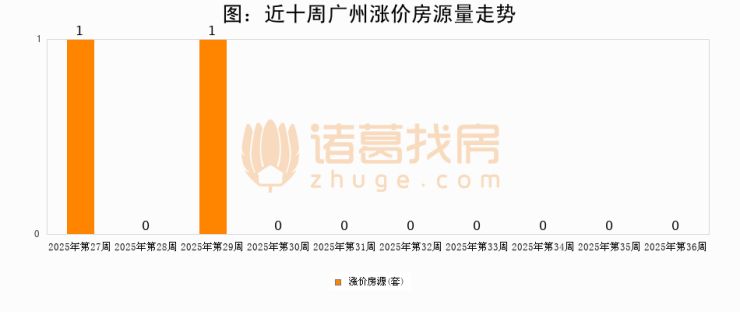 从调价房源来看,第36周广州涨价房源0套,较上周持平。与此同时,36周涨价房源占比持平