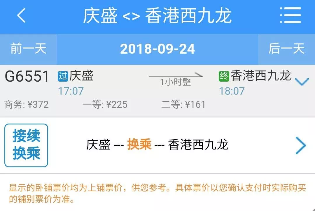 值得注意的是,目前内地高铁网络有优惠安排,非高峰期有一定优惠。例如,今日小南在12306官网查询得知,庆盛站发往香港西九龙的列车,非高峰期二等座票价为161元,比之前铁路部门公布的185元优惠24元。
