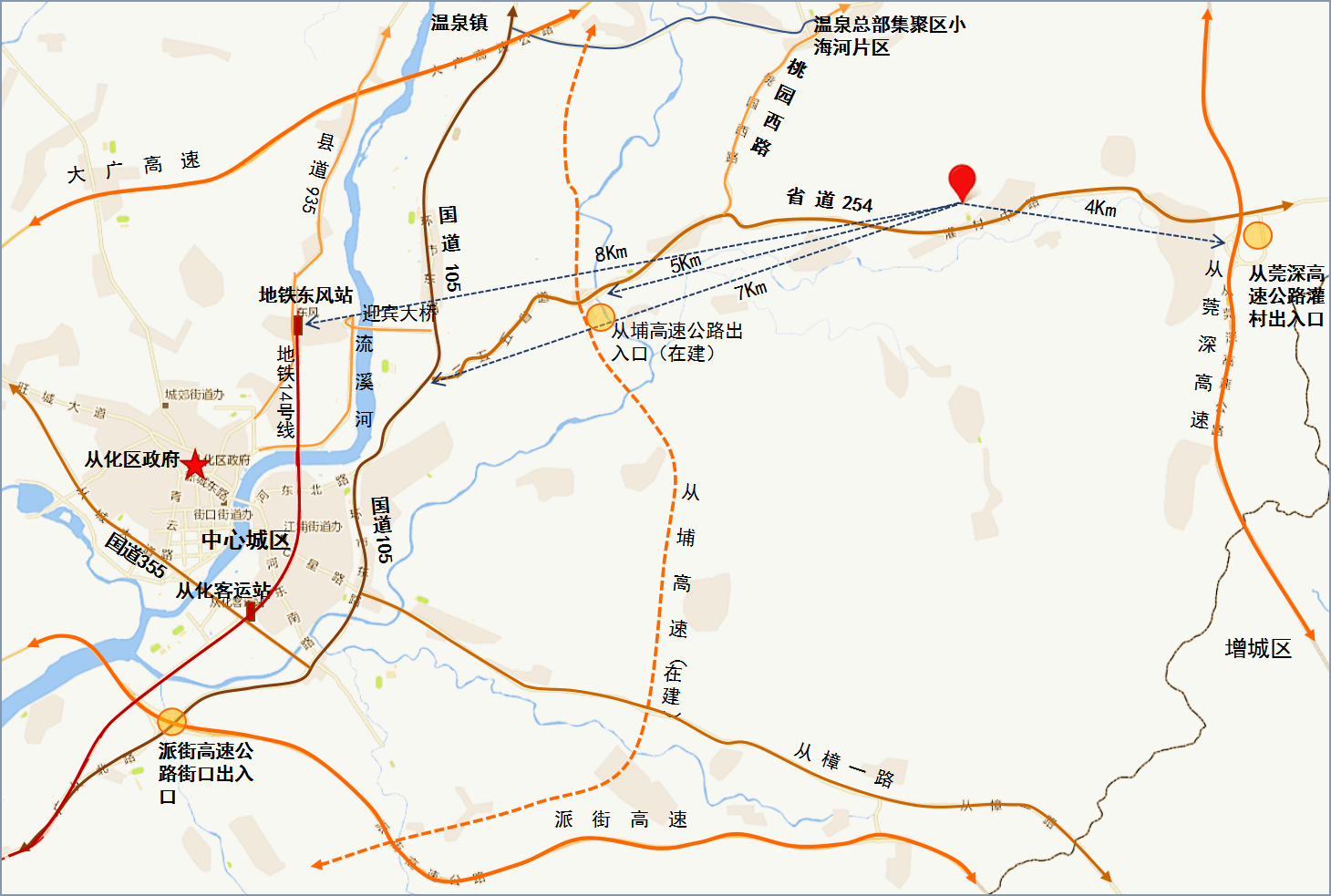 规委会上介绍,该区域产业生态系统高端、周边自然环境优越,地块临近省道 254,距离从化中心城区约10公里,距地铁14号线东风站8公里,距从莞深高速灌村出入口4公里,交通较为便捷。