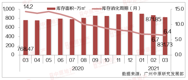 截至3月末,全市库存量为831.73万㎡,去化周期6.4个月。