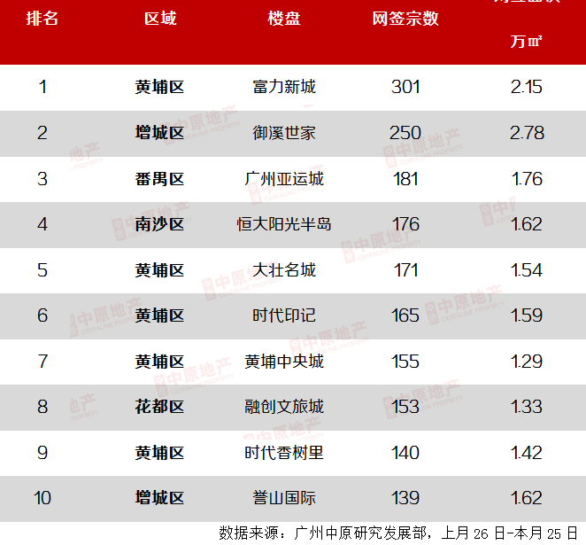 由于本月新批预售速度放缓,影响了部分楼盘的推新计划;导致本月成交前十的项目“清一色”为各区存货充足的“巨无霸”大盘。