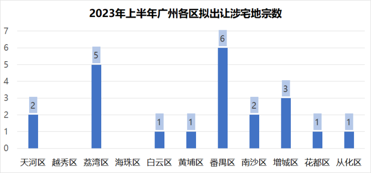 截至7月,2023年上半年广州就土拍地块中番禺就占了6块,其中有多块地还是封顶摇号成交的,可见上半年番禺在土拍上带来的动静有多大。