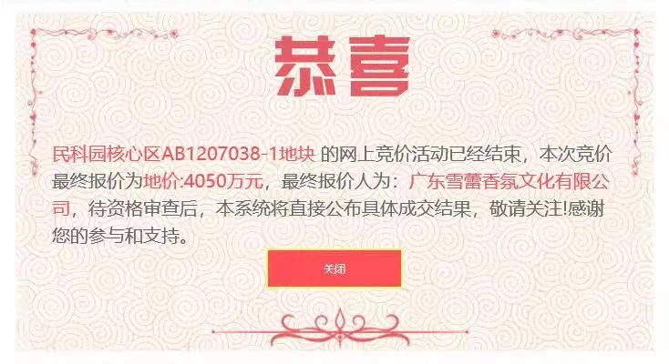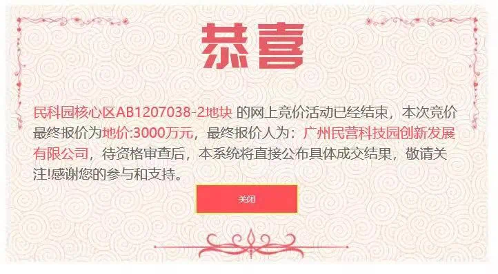 4月23日,民科园范围内的三宗一类工业用地成功出让,包括核心区AB1207038-1地块、AB1207038-2地块和广州轨道交通装备产业园AB0105102-1地块,竞得人为广东雪蕾香氛文化有限公司、广州民营科技园创新发展有限公司和广州民科园投资有限公司。