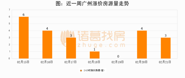 根据诸葛找房数据显示,广州24小时涨价房源量为3套,较02月20日减少1套,环比下降25%。与此同时,涨价房源占比小幅回落,对于购房者来说是一个入市窗口期,购房者可抓住时机入市。