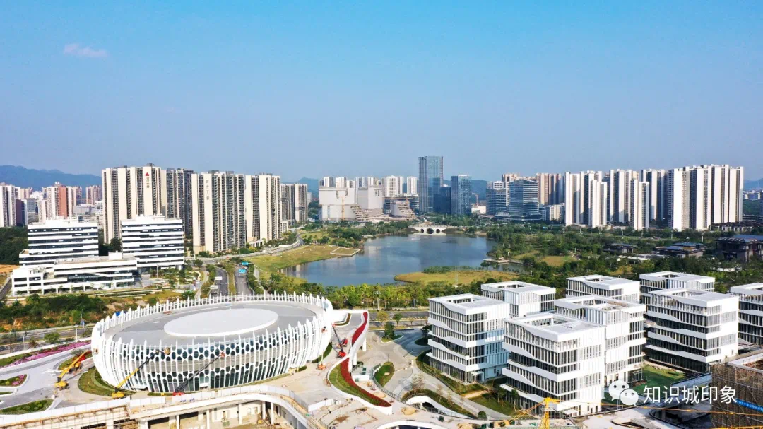 其中,广州知识城国际会展中心已建成运营。该中心南侧的多层办公楼区域(含8独栋式绿色生态产业办公楼和5栋生态合院式产业办公楼),已建成近半。如下图所示:图中的圆形类似“鸟巢”的建筑,就是知识城国际会展中心。