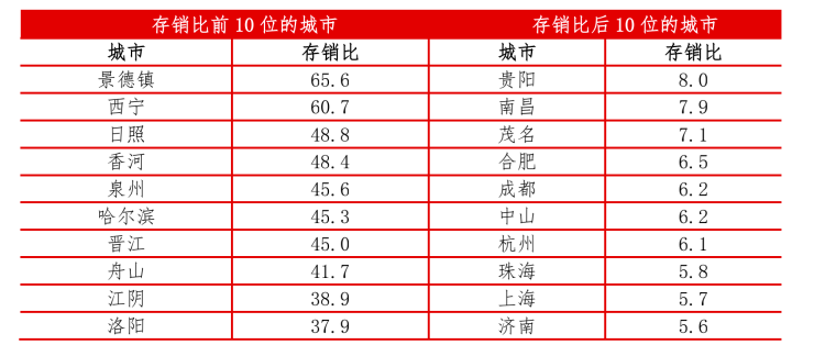 新房库存消化需要多久?上海5.7个月,杭州6.1个月,但景德镇、西宁需要5年以上,山东日照、河北香河超过4年。