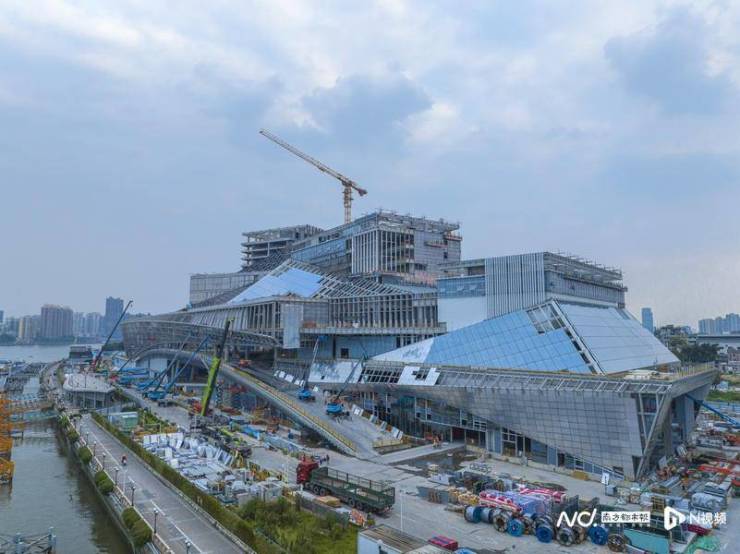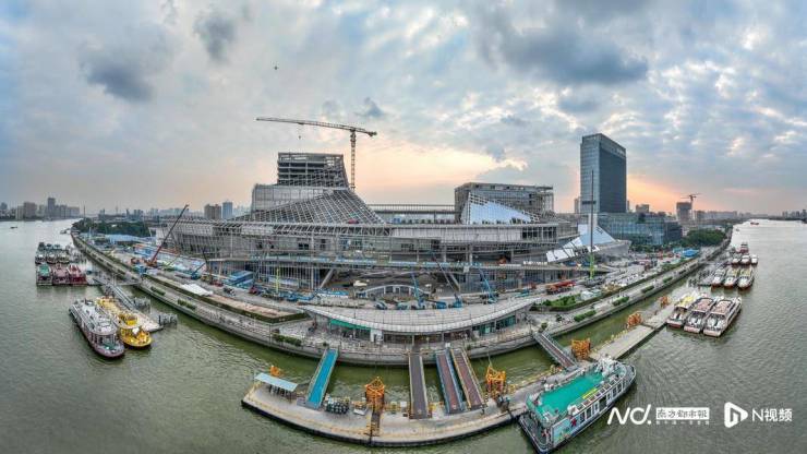 9月24日,白鹅潭畔,“巨舰”浮现,广东“三馆合一”项目已全面封顶。南都拍客 付海燕 摄