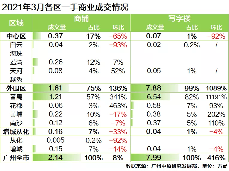 一手商办:商业新批预售收紧,批量确权交易撑市3月多地严查购房首付款来源,抑制楼市“局部过热”情况,此外广州为稳定楼市预期,在春节后有计划地收紧新批预售。本月广州商业市场推盘减少,基本以批量确权的成交为主。