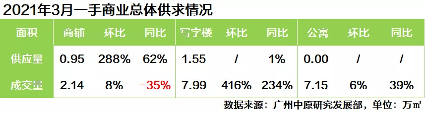 据监测,广州商铺市场供应在3月中旬开始释放,本月共入市125套0.95万㎡,供应量较上月低位约增长2.9倍。市场成交凭借个别项目批量确权撑市,环比微涨8%,为207套2.14万㎡。写字楼市场仅单个项目有新批预售,供应38套1.55万㎡,供应量与去年同期持平。受万博板块全新项目的批量确权影响,本月写字楼市场成交触底反弹至332套7.99万㎡,较上月低位增长4.2倍。公寓市场春节后供应收紧明显,本月无新货入市。市场成交同样依靠个别项目的大批量确权,环比微涨6%,为1176套7.15万㎡。各分市场详细分析如下:商铺&写字楼市场