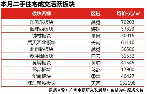 天河、越秀多个板块成交活跃本月,越秀、天河多个板块成交活跃。其中,越秀以东风东板块、北京路板块需求量较大。其成交均价分别为70203元/平、56586元/平。而天河则以后天河北板块、珠江新城板块活跃度较高,其板块成交均价分别为61110元/平、132198元/平。