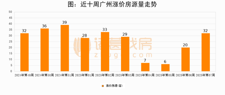 从调价房源来看,第7周广州涨价房源32套,较上周上涨60%。与此同时,7周涨价房源占比提升0.49个百分点,业主信心持续恢复。