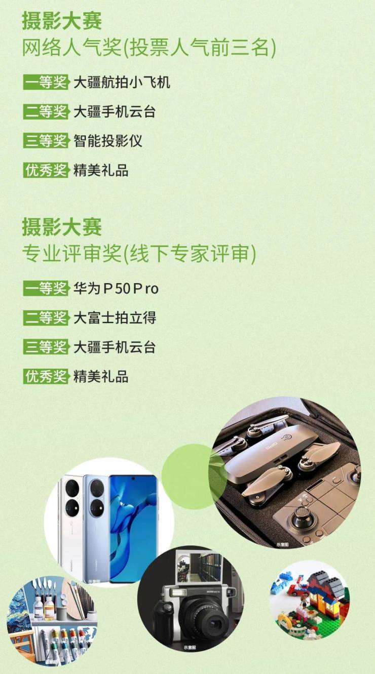 距离摄影大赛投稿截止时间还有20多天,热忱欢迎广大市民、摄影家、摄影爱好者积极参与,踊跃投稿。本次参赛优秀摄影作品,将进行现场展览,还有机会获得华为P50Pro、大疆航拍小飞机等精美礼品。