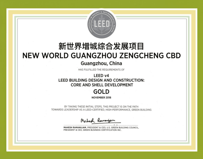 与此同时,为了支持广汇新世界金融中心|广汇尊府绿色项目的发展。新世界中国积极探索绿色金融,发行绿色债券,更是荣获由The Asset财资杂志颁发的“地产类最佳绿色债券”奖项,透过绿债资金的支持和发展,项目已获得国际LEED金级预认证及中国《绿色建筑评价标准》二星认证。