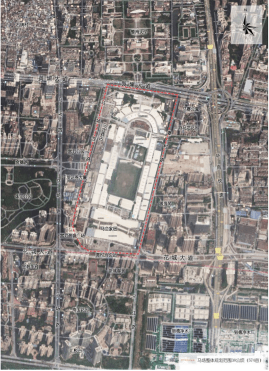 马场位于珠江新城东北部,于20世纪90年代建成并经营了7年赛马业,因而得此名。《公告》显示,马场地块北至黄埔大道,西至马场西路,东至潭村路,南至马场北路,总面积约38公顷,大小相当于53个国际标准足球场、6.67个正佳广场、9.27个天河城。