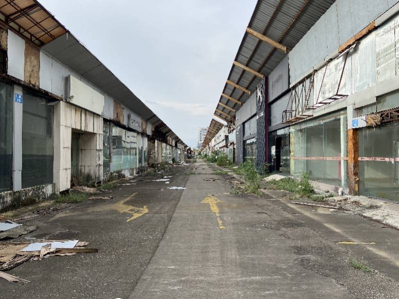荒废破旧的临时汽车展厅。