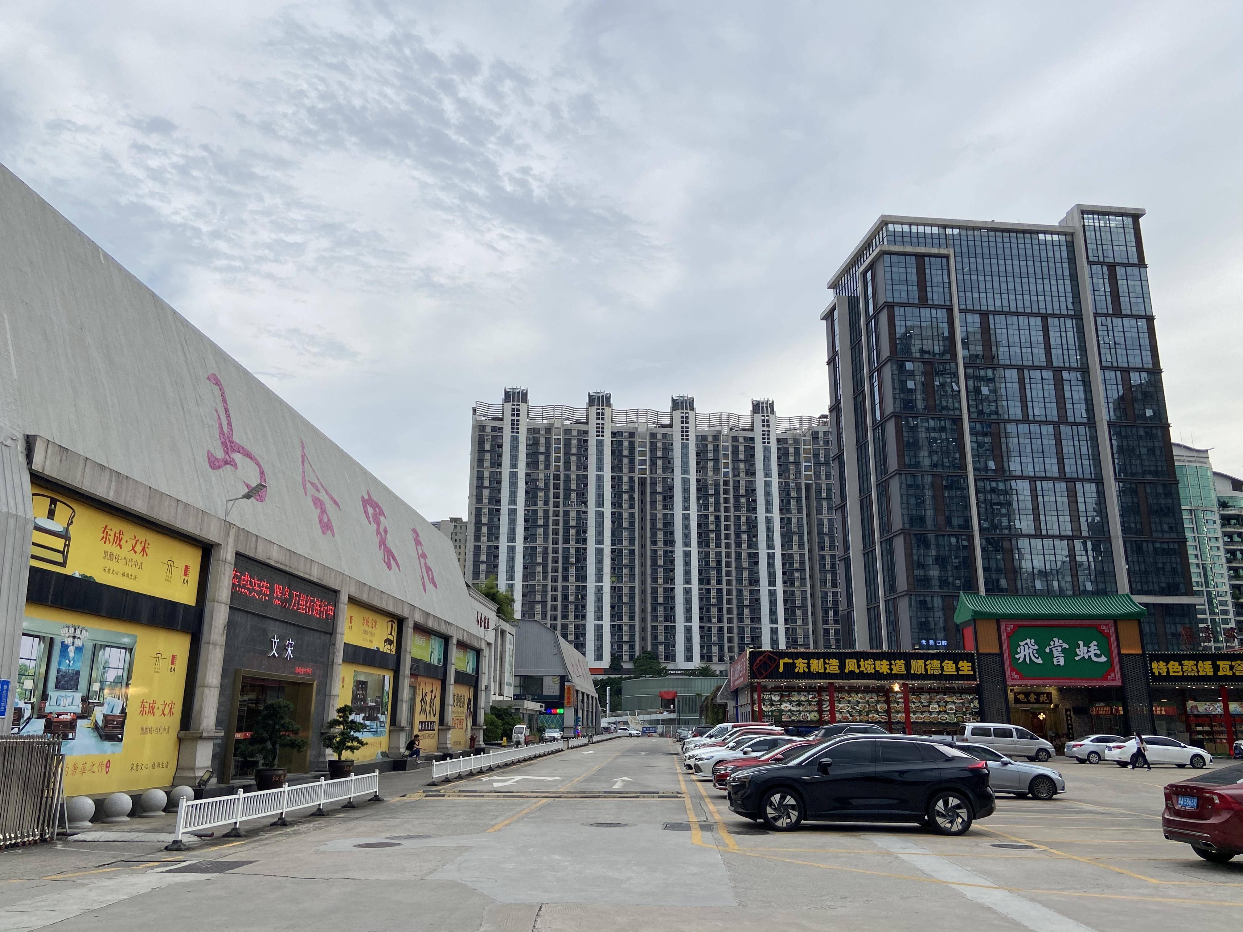 这里的餐厅大多是较知名的风味菜,有粤菜、潮汕菜、西北菜,大部分食客自驾而来,在这样的地段营业,可见消费水平并不低。由于往西不远有太阳新天地,甚至正佳广场、天河城、太古汇产生商业虹吸效应,这里的商铺生意并不如意。只不过,相比此时冷寂的家居城和停车场,商铺引来的客流声也略显“喧嚣”。