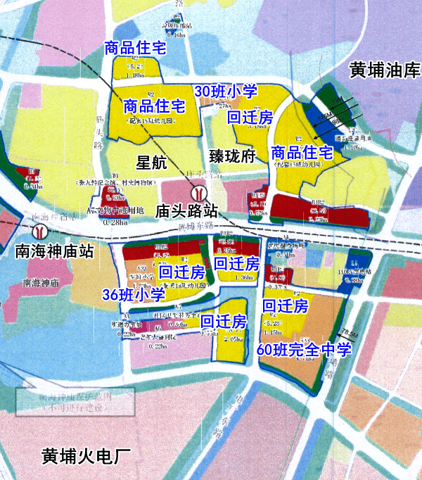 复建区回迁房共5个组团,主要位于黄埔东路两侧、隔墙路与黄埔大桥之间,距离中小学用地及其他公建配套都比较近。而黄埔东路南侧的两宗地既挨着商业地块,又靠近13号线南海神庙站以及5号线东延段庙头路站,为居民日常生活以及出行带来便利。
