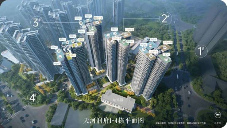 天河润府全新加推的1栋正在热销中,看位置和景观,1栋就在园区景观中轴之上。南向超长视野通廊,东南向通风、采光、视野均好,西南向拥有学校开阔视野,90㎡小户型,也能做到目送式上学。