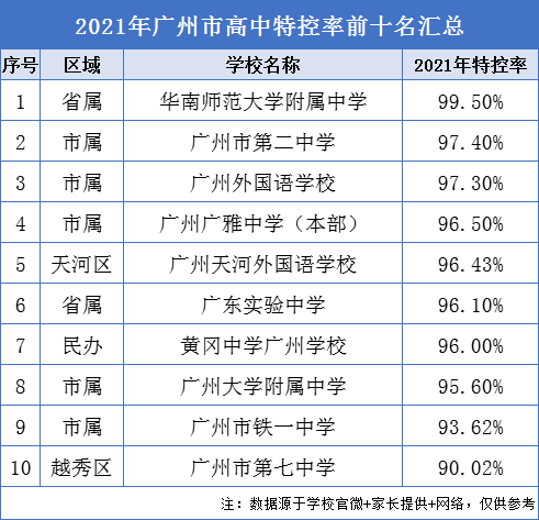 2021年,其特招率(高优率/重本率)更是达到96.5%,依旧是位居广州前列。