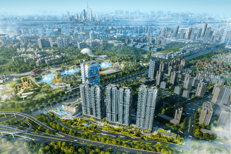 广州耀胜新世界广场项目,位于广州万博CBD,汉溪长隆地铁站上盖,比邻广州知名旅游景点长隆野生动物世界,是一个基于交通枢纽进行综合开发的TOD项目。在这个地理位置得天独厚的综合体项目上,新世界中国通过创造性设计,无缝链接住宅、商业、地铁公共出行系统,满足人们从生活到商务的多元需求。项目以绿建三星和LEED金级双标准打造,融入海绵城市设计理念,通过六维立体园林的创新设计,构筑出一座城市中的“垂直森林”,让自然、生活和艺术在这里融合,呈现出独特的愉悦生活美学。