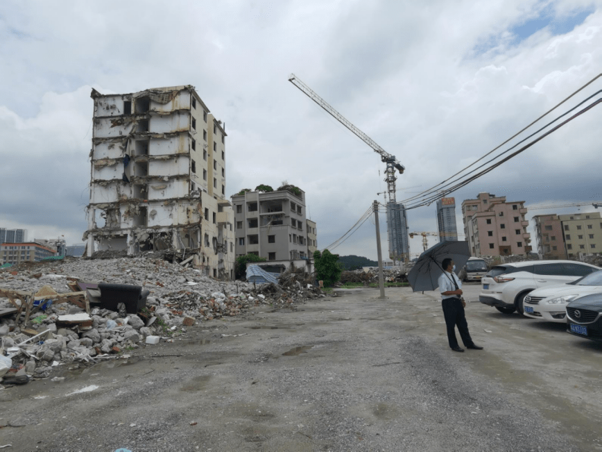广州黄埔区,被整栋推倒的房子和远处在建的新房。南都记者邱永芬摄