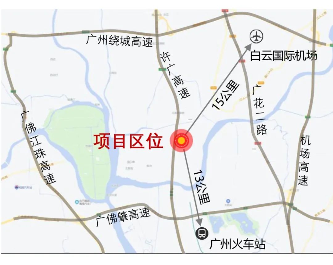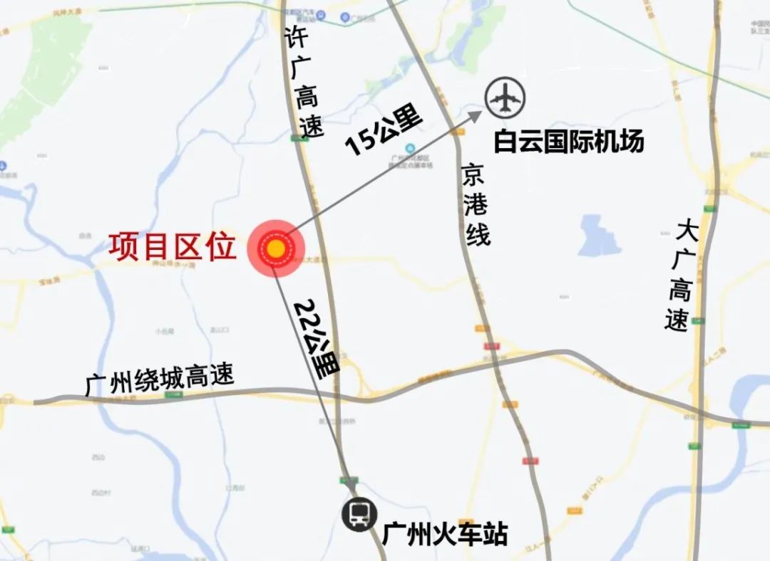 项目地块位于白云区江高镇白云工业园西部范围内,与大朗站直线距离2公里,西侧为广清高速,中部为巴江东路。
