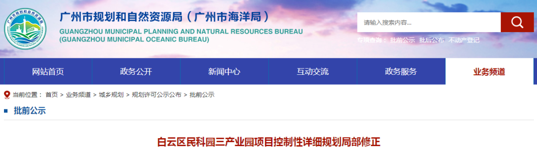 近日,广州市规划和自然资源局发布《白云区民科园三产业园项目控制性详细规划局部修正》批前公示。