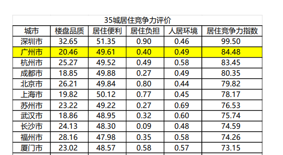 广州居住竞争力排名第二,居住便利是其优势