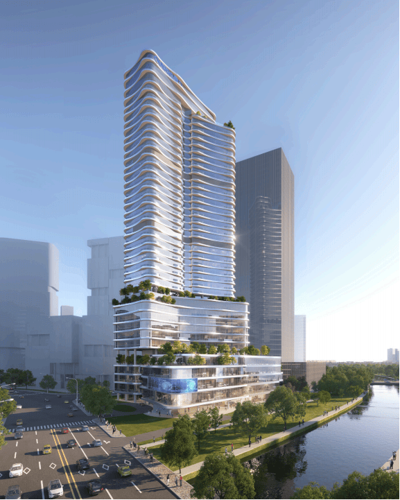 项目一大亮点是在建筑裙楼部分计划打造约600个席位的B级标准专业电竞场馆,既可作为国际级电竞赛事和职业联赛的重要承载空间,也将成为电竞俱乐部主场基地,融合赛事运营、战队训练、青训培养和内容生产等功能,构建丰富多元的电竞生态空间。