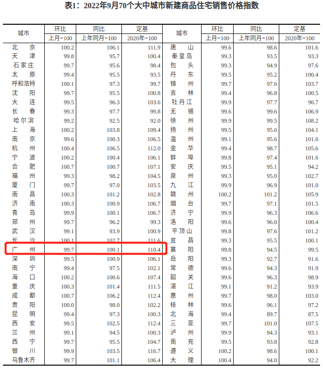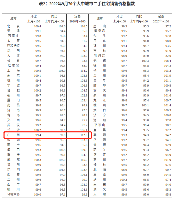 广州此番“双跌”,与一线城市的整体表现相合。国家统计局城市司首席统计师绳国庆解读表示,9月,一线城市新建商品住宅和二手住宅销售价格环比“一降一平”,新建商品住宅由上月的上涨0.1%转为下降0.1%,二手住宅销售价格则与8月持平。