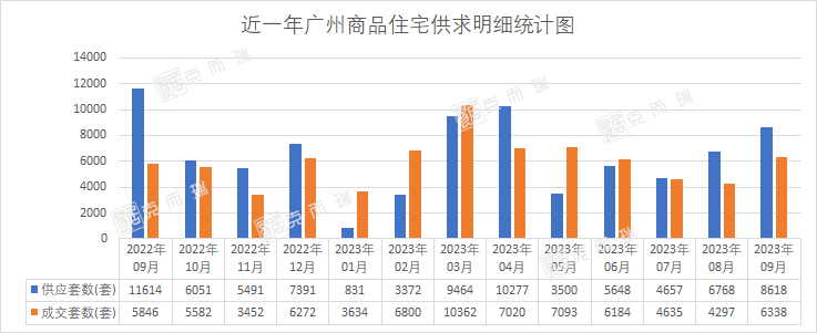 克而瑞数据显示,以商品住宅为例,为备战“金九”,今年9月广州商品住宅供应8618套,供应规模为今年第三高,环比上升27%,同比下降26%。成交6338套,环比上升47%,同比上升8%,为广州楼市连跌5个月以来首次反弹。